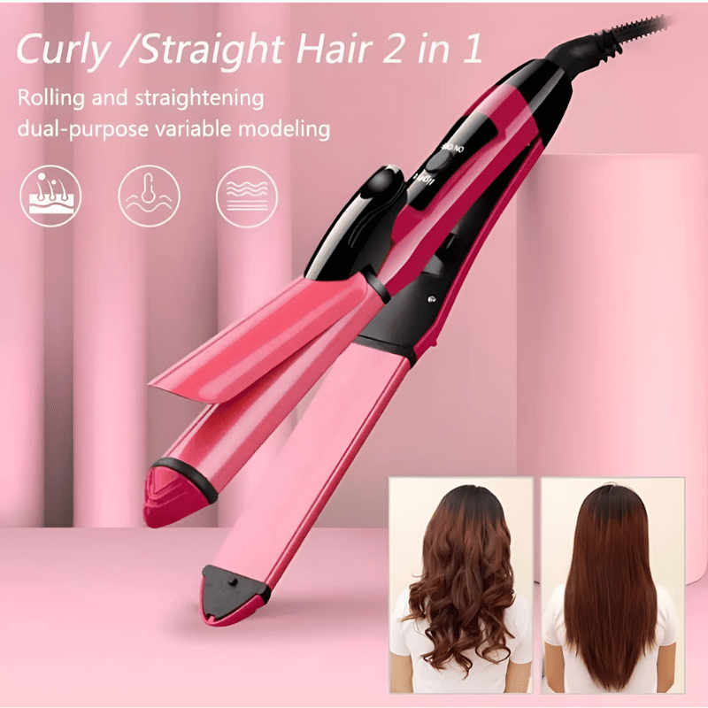 Nova 2-in-1 Hair Straightener & Curler – Model NH-2009, Quick Heat-Up Ceramic Plates for Smooth Straightening & Effortless Curls, Portable Dual-Use Styling Tool for All Hair Types